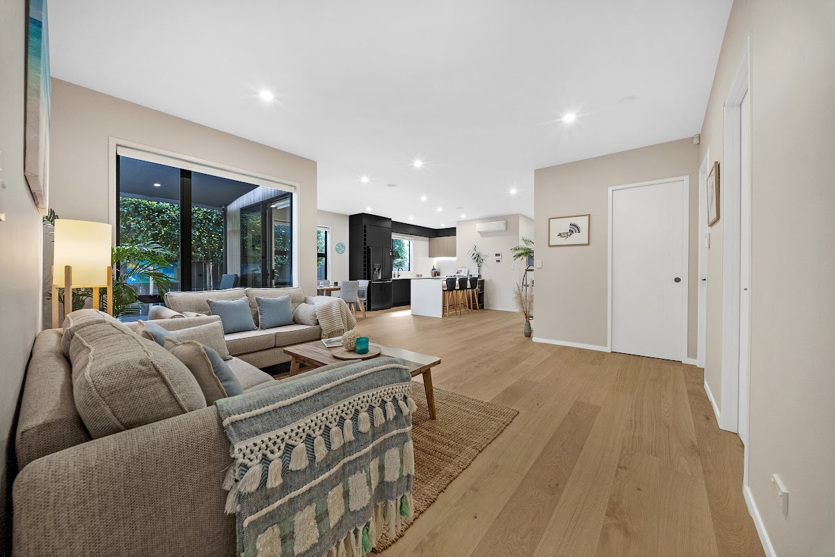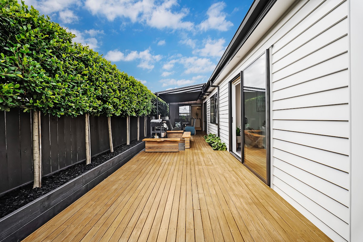 Located in a quiet, friendly neighbourhood, this is a spacious family sanctuary. (191 m² floor area + 30 m² deck – more or less). It is a truly exceptional residence featuring 4 bedrooms; 2.5 bathrooms; open plan living, kitchen and dining; a separate living space; and a large deck for effortless indoor-outdoor flow.