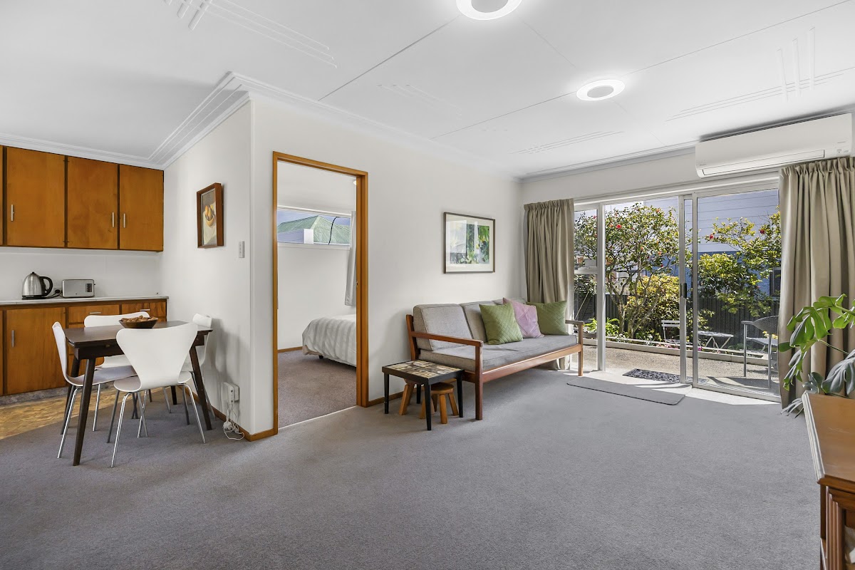 Inside feels welcoming from the moment you step through the door, with neutral tones that let your own style shine. The layout works well with the combined bathroom and laundry off the entrance, complete with a wet-floor shower. The open-plan kitchen, dining and living area flows naturally. Both bedrooms include built-in wardrobes. This home is warm and dry; all windows are double glazed, newly installed, and a decent sized heat pump ensures it is cosy year-round.