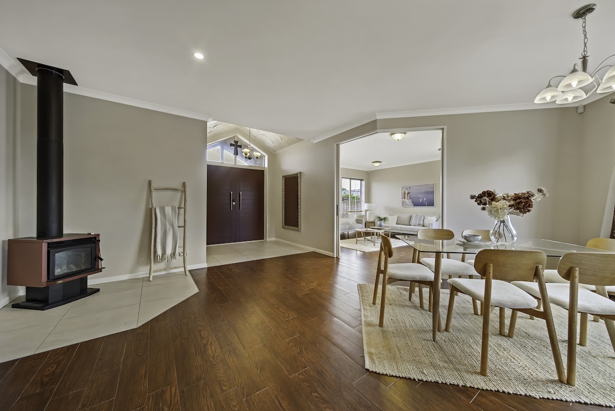 From the moment you step inside, the soaring cathedral-style ceilings set the tone for this magnificent home — a true statement of warmth, space, and elegance. Earthy, natural tones flow seamlessly from the grand entrance through to the formal lounge, open-plan living, and dining areas, creating a sense of harmony and connection throughout.